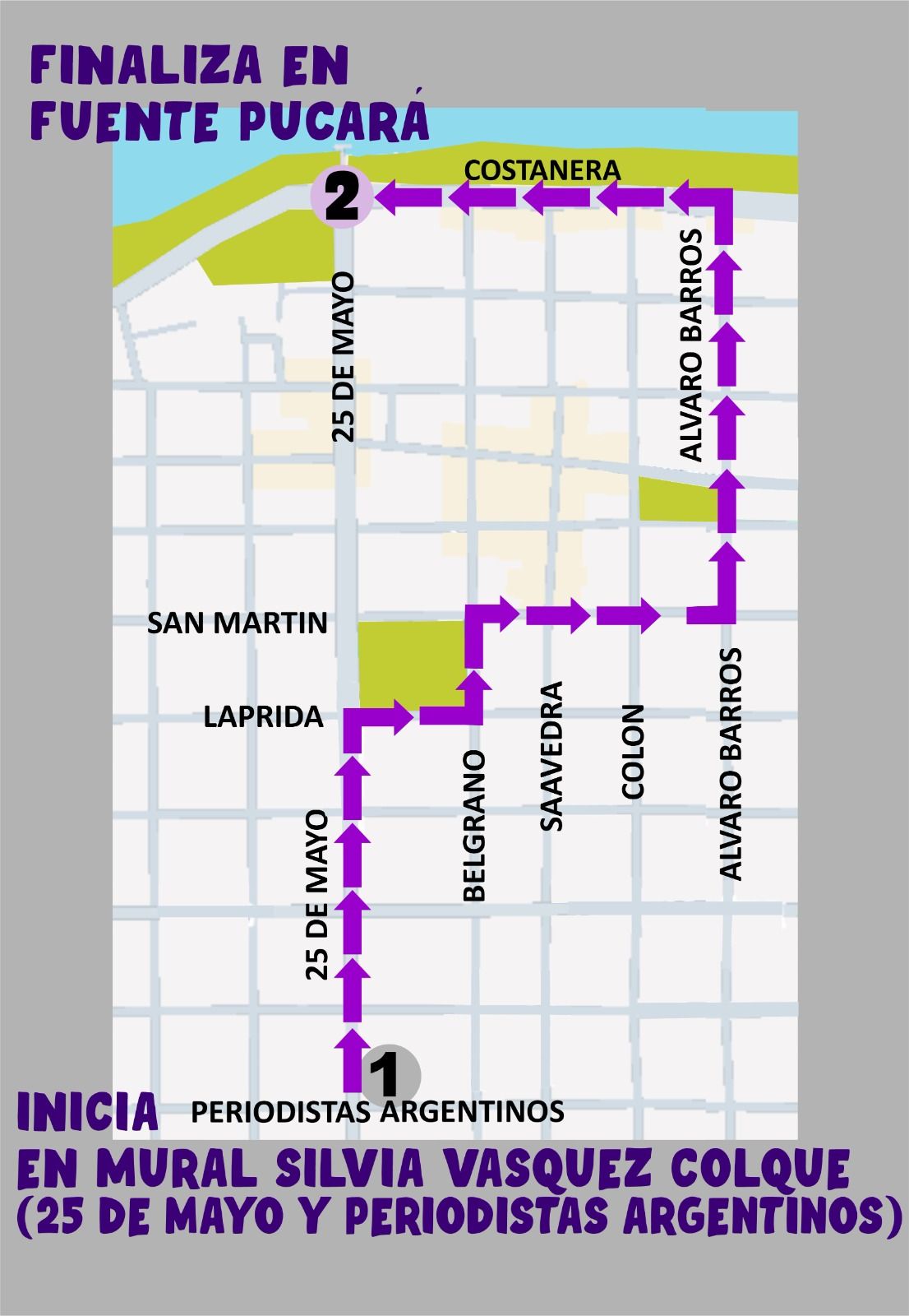 La jornada comenzará a las 17 horas en el nuevo mural de Silvia Vázquez Colque, ubicado en la intersección de Periodistas Argentinos y 25 de Mayo. Desde allí partirá la movilización.