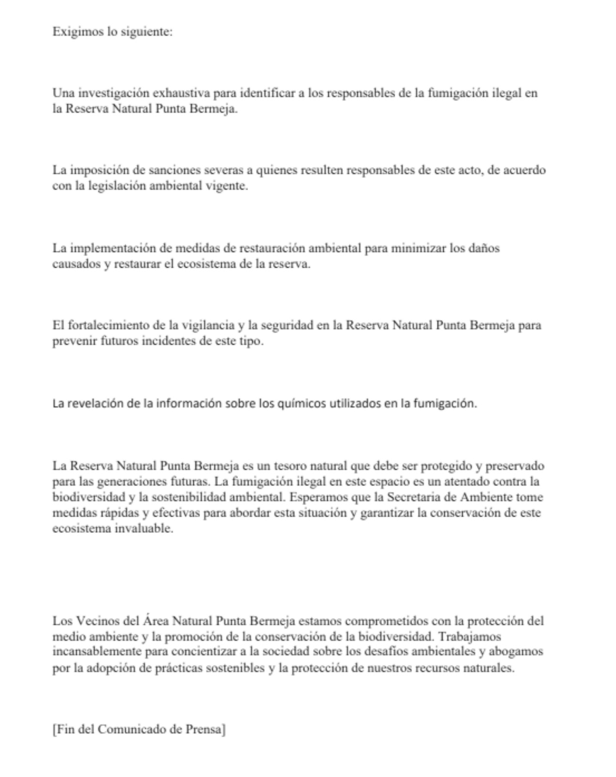 La fumigación ilegal en la Reserva Natural Punta Bermeja es un atentado contra la biodiversidad y la sostenibilidad ambiental. Es importante que las autoridades tomen medidas rápidas y efectivas para abordar esta situación y garantizar la conservación de este ecosistema invaluable.